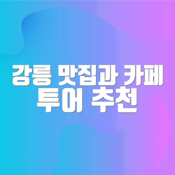 강릉 맛집과 카페 투어는 맛과 분위기를 동시에 즐길 수 있는 완벽한 여행 코스입니다. 미리 계획하고 다양한 음식을 경험해 보세요.